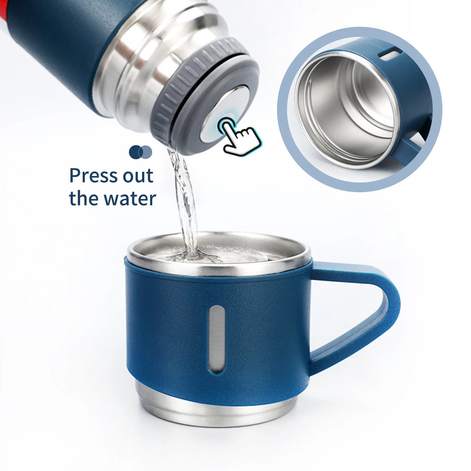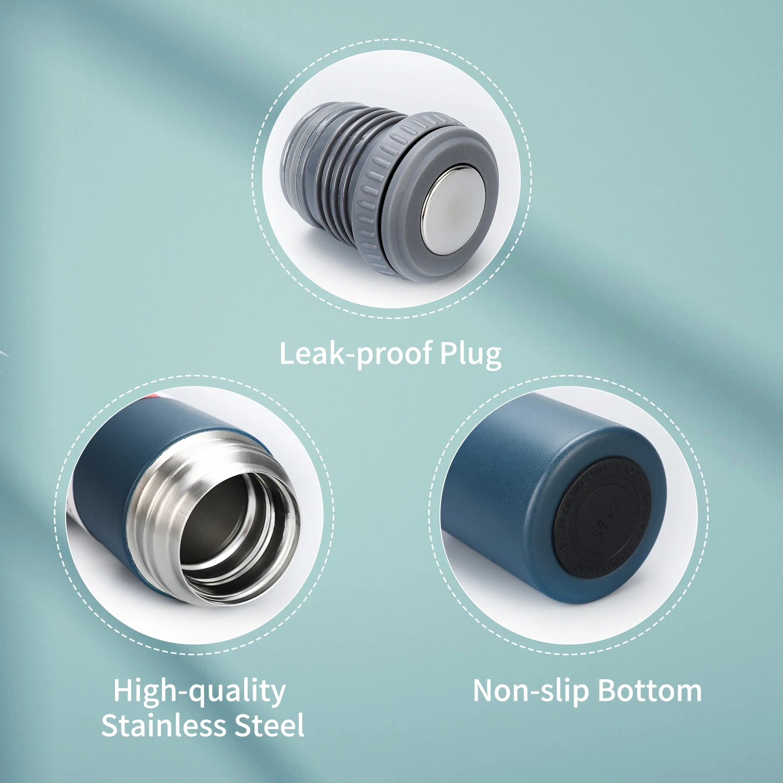 Cette bouteille thermos est fabriquée en acier inoxydable 201 & 304, offrant une structure résistante aux chocs et à la rouille, et une protection en plastique robuste au fond pour éviter les bris.